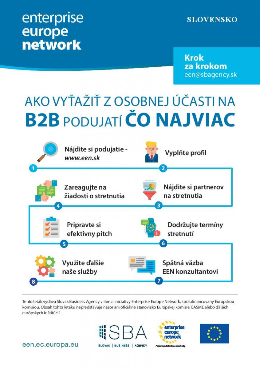 Podujatia realizované v rámci Enterprise Europe Network (o EEN sme už písali – link) sú organizované partnerskými organizáciami po celom svete. O aktuálnych podujatiach vás môže informovať lokálny partner, ako je aj Slovak Business Agency, alebo môžete sledovať prehľad podujatí na webe EEN.
