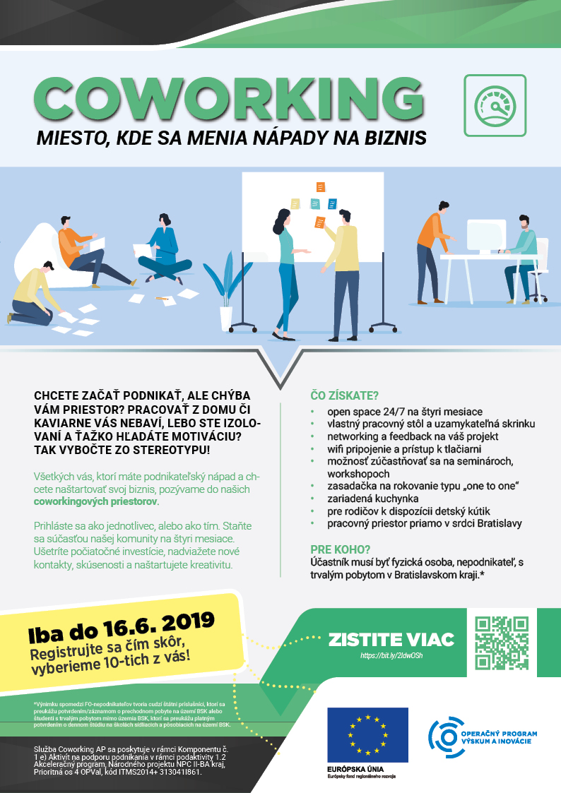 AK CHCETE ZÍSKAŤ MIESTO V COWORKINGU, KLIKNITE SEM