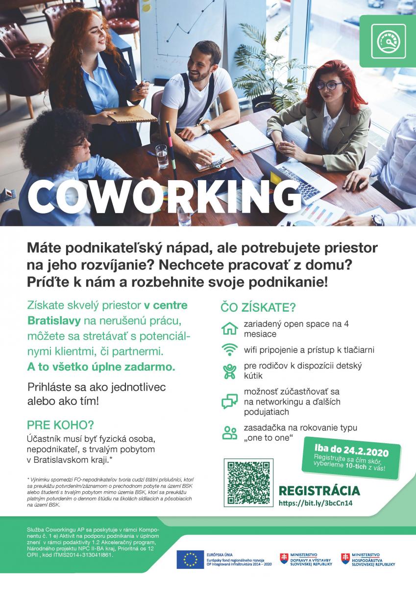 Služba Coworking Akceleračného programu je pre nepodnikateľov zabezpečená prostredníctvom Národného projektu NPC II – BA kraj, v rámci podaktivity 1.2 Akceleračný program.