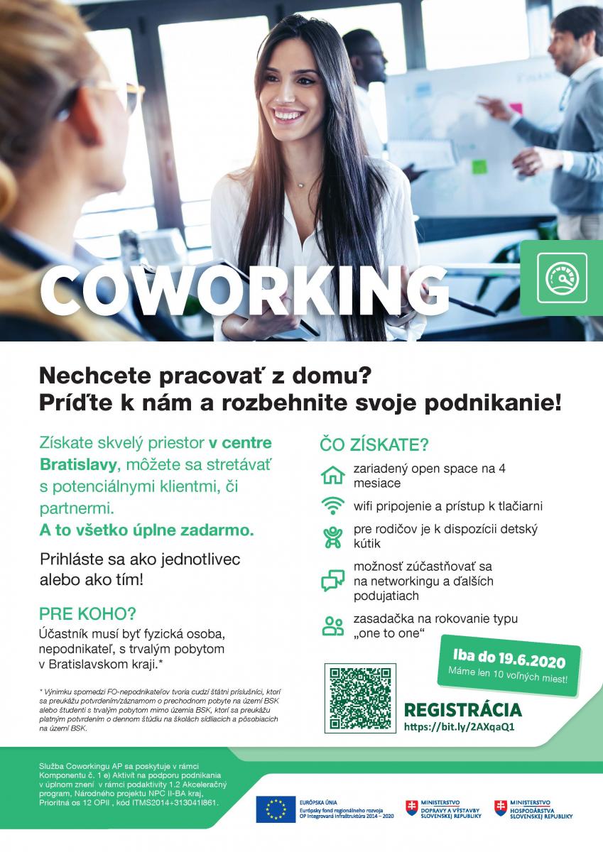 Služba Coworking Akceleračného programu je pre nepodnikateľov zabezpečená prostredníctvom Národného projektu NPC II – BA kraj, v rámci podaktivity 1.2 Akceleračný program.