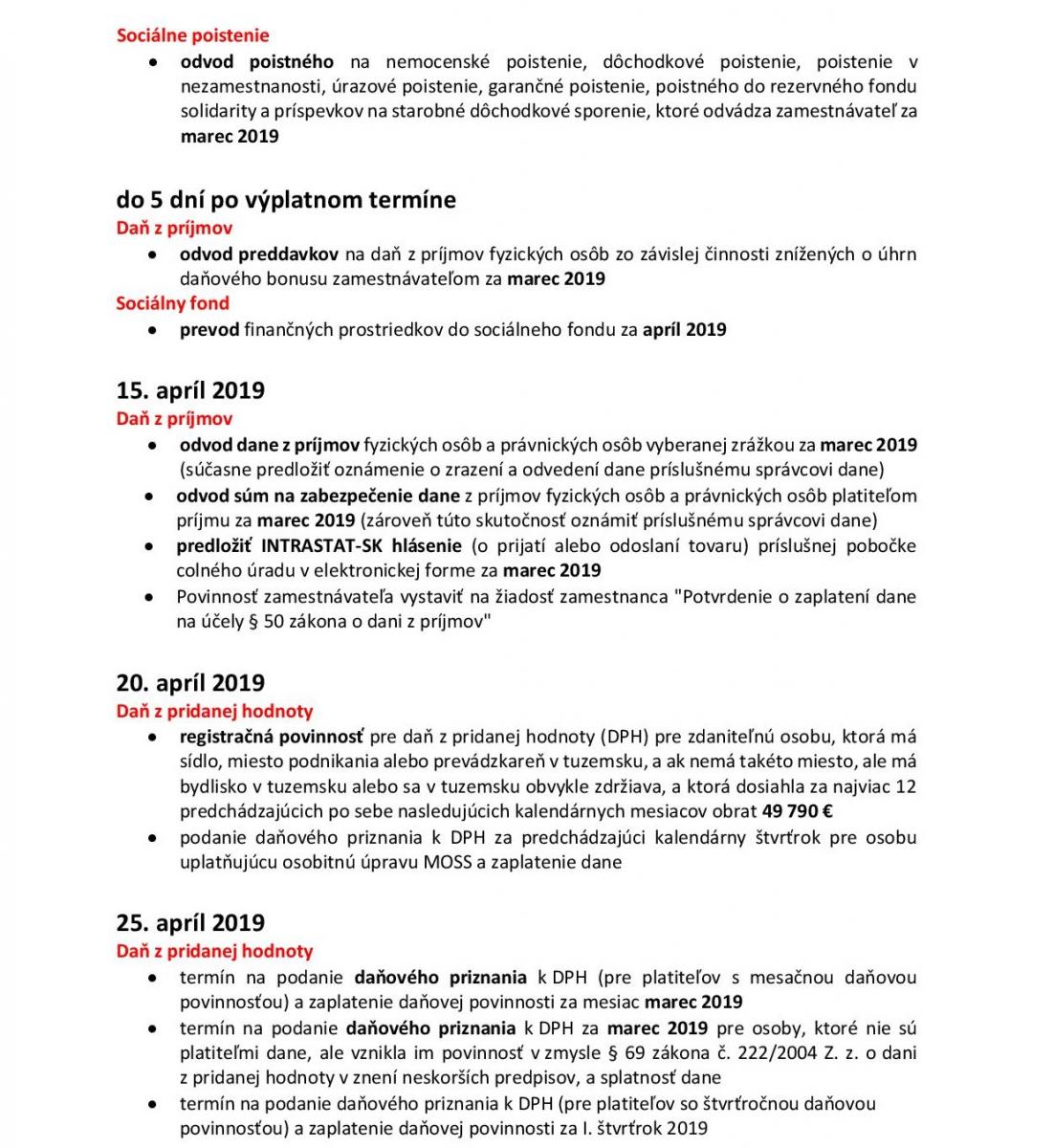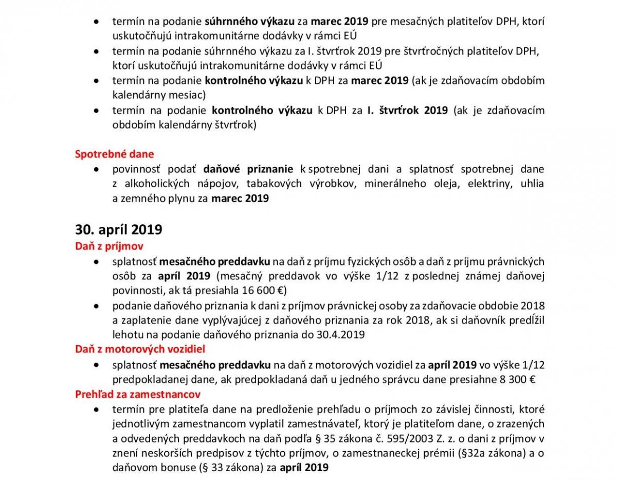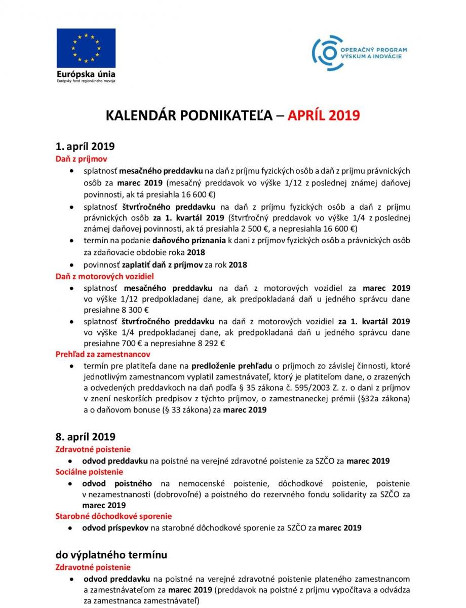 Kalendár podnikateľa – apríl 2019