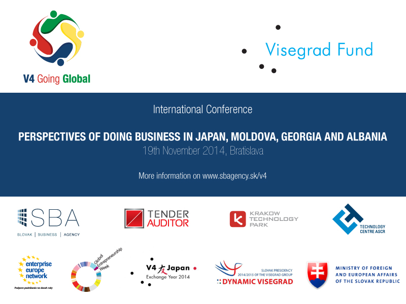 Slovak Business Agency a partneri Vás, podnikateľov, ale i organizácie na podporu podnikania, pozvali na konferenciu V4 Going Global, kde sa stretnú odborníci zo Slovenska i zo zahraničia, ako aj podnikatelia z okolitých krajín, ktoré majú skúsenosti s podnikaním v predmetných krajinách.