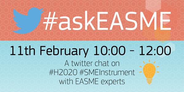 Európska Agentúra pre podporu malého a stredného podnikania (EASME) pozýva vysoko inovatívne firmy na online diskusiu prostredníctvom sociálnej siete TWITTER. Diskusia sa uskutoční 11.februára medzi 10:00 – 12:00 hod.