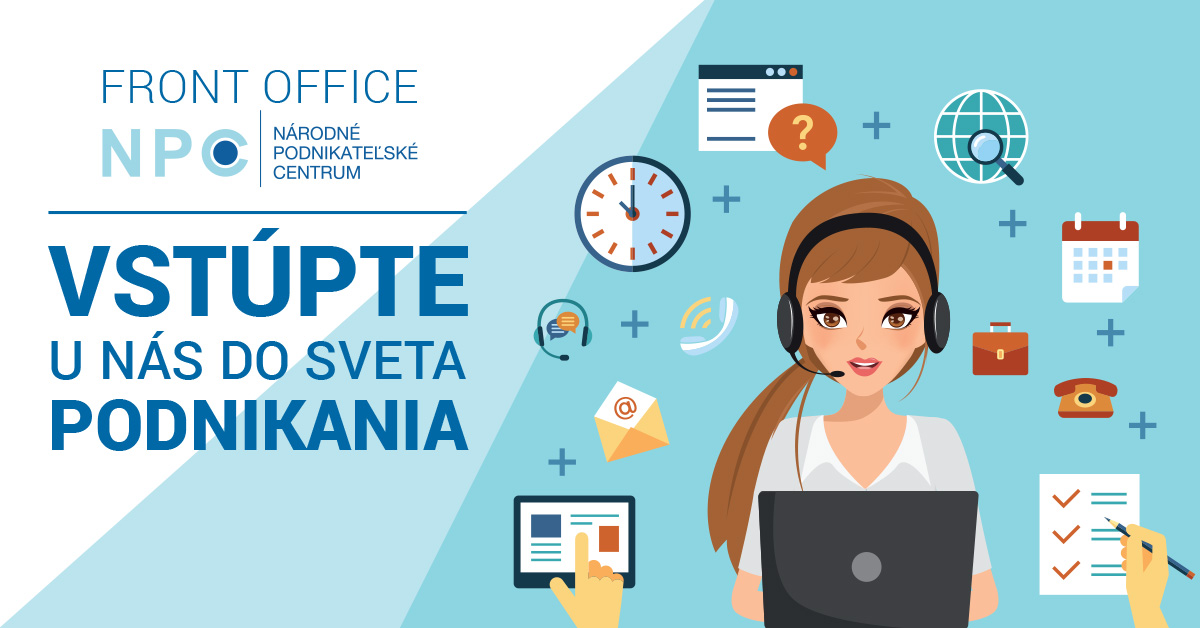 Začínajúci podnikatelia majú prístup k množstvu informácií, no niekedy je ťažké sa v nich zorientovať. V našom klientskom centre - Front Office - vás nasmerujeme, bezplatne poradíme ako a kde začať, na čo si dať pozor, spoločne objavíme nové možnosti realizácie. Klientske centrum Front Office, ktoré sídli v Národnom podnikateľskom centre (NPC) v priestoroch Business Centra Twin City A2 na Karadžičovej ulici 2 v Bratislave, je to správne miesto, ktoré by ste mali navštíviť, ak o vstupe do biznisu uvažujete. Otváracie hodiny sú od pondelka do piatku od 9.00 do 17:30 hod. Kontakt: info@npc.sk.