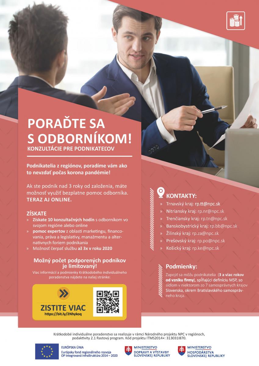 Podnikatelia z regiónov, poradíme vám ako to nevzdať počas korona pandémie! Ak ste podnik nad 3 roky od založenia, máte možnosť využiť bezplatne pomoc odborníka. Teraz aj online.