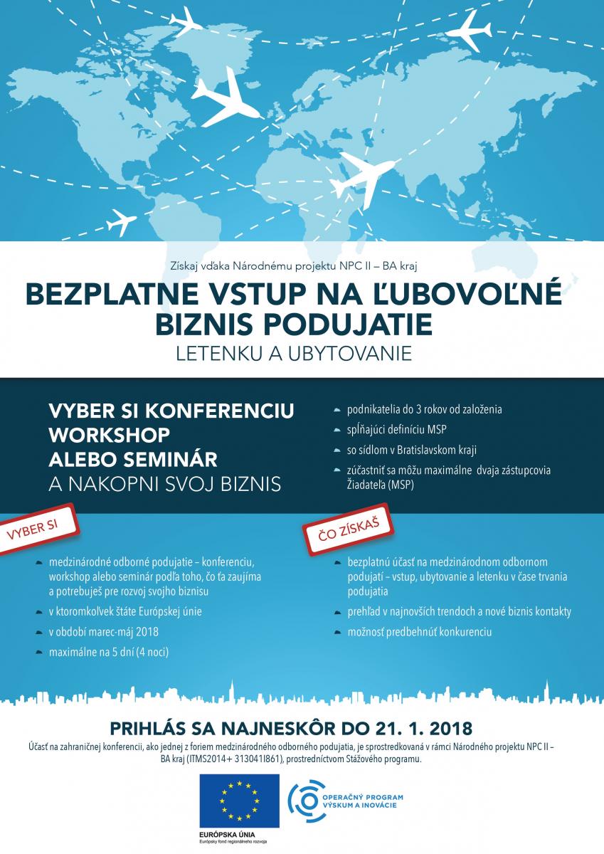 VÝZVA NA PREDKLADANIE ŽIADOSTÍ O POSKYTNUTIE POMOCI V RÁMCI STÁŽOVÉHO PROGRAMU NÁRODNÉHO PODNIKATEĽSKÉHO CENTRA V BRATISLAVE - Medzinárodné odborné podujatia