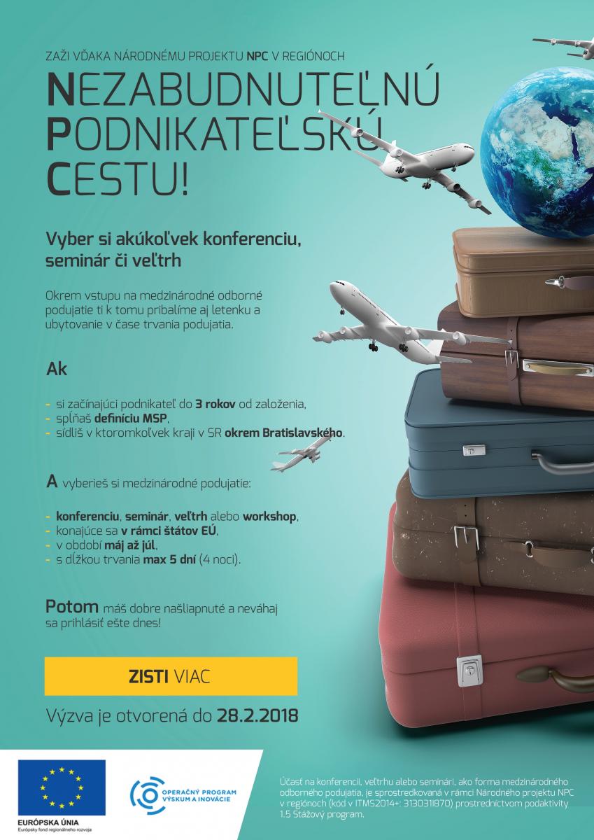 Výzva na predkladanie žiadostí o poskytnutie pomoci v rámci Stážového programu Národného podnikateľského centra v regiónoch – medzinárodné odborné podujatia je otvorená.
