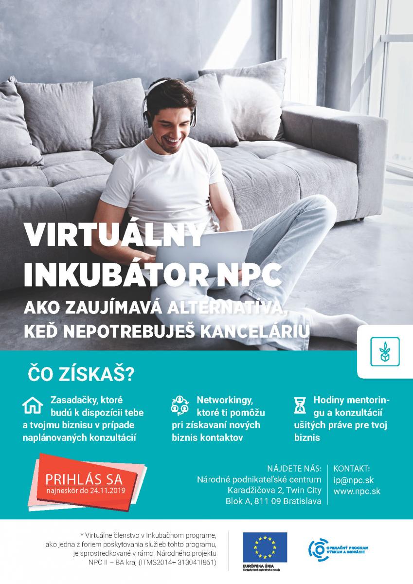 Po odoslaní Vám na e-mail, ktorý ste zadali pri registrácii, príde Vaša Žiadosť o účasť v Inkubačnom programe - virtuálne členstvo. Prílohy Vás prosíme zaslať na adresu: ip@npc.sk.