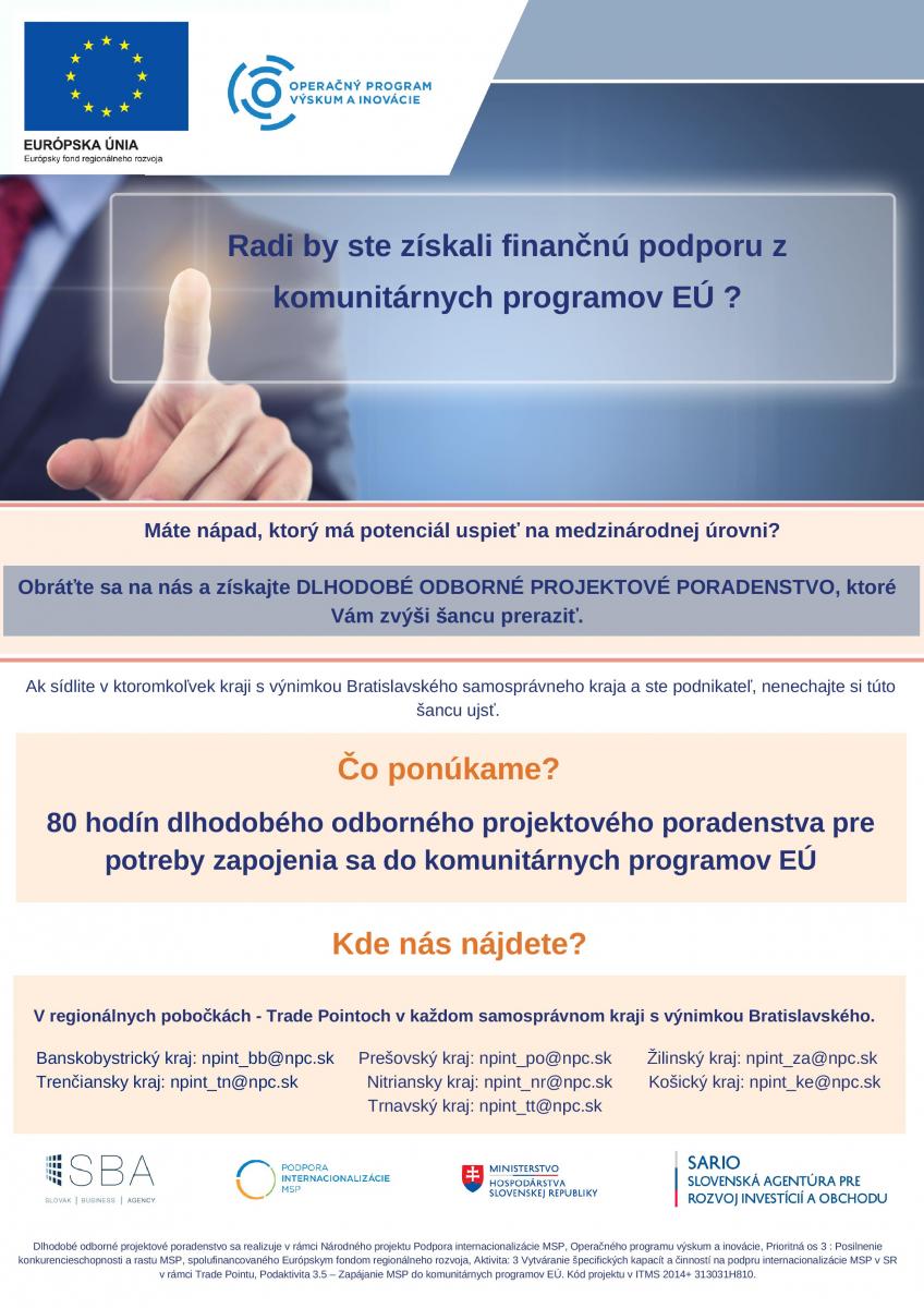 Výzva – Dlhodobé odborné projektové poradenstvo pre potreby zapojenia sa do komunitárnych programov EÚ