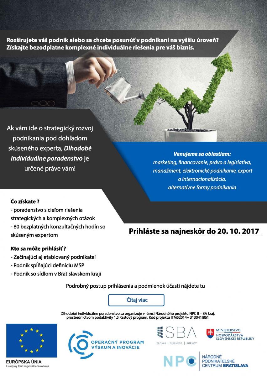 Výzva na predkladanie žiadostí o poskytnutie nefinančnej pomoci v rámci Rastového programu Národného podnikateľského centra v Bratislave – Dlhodobé individuálne poradenstvo