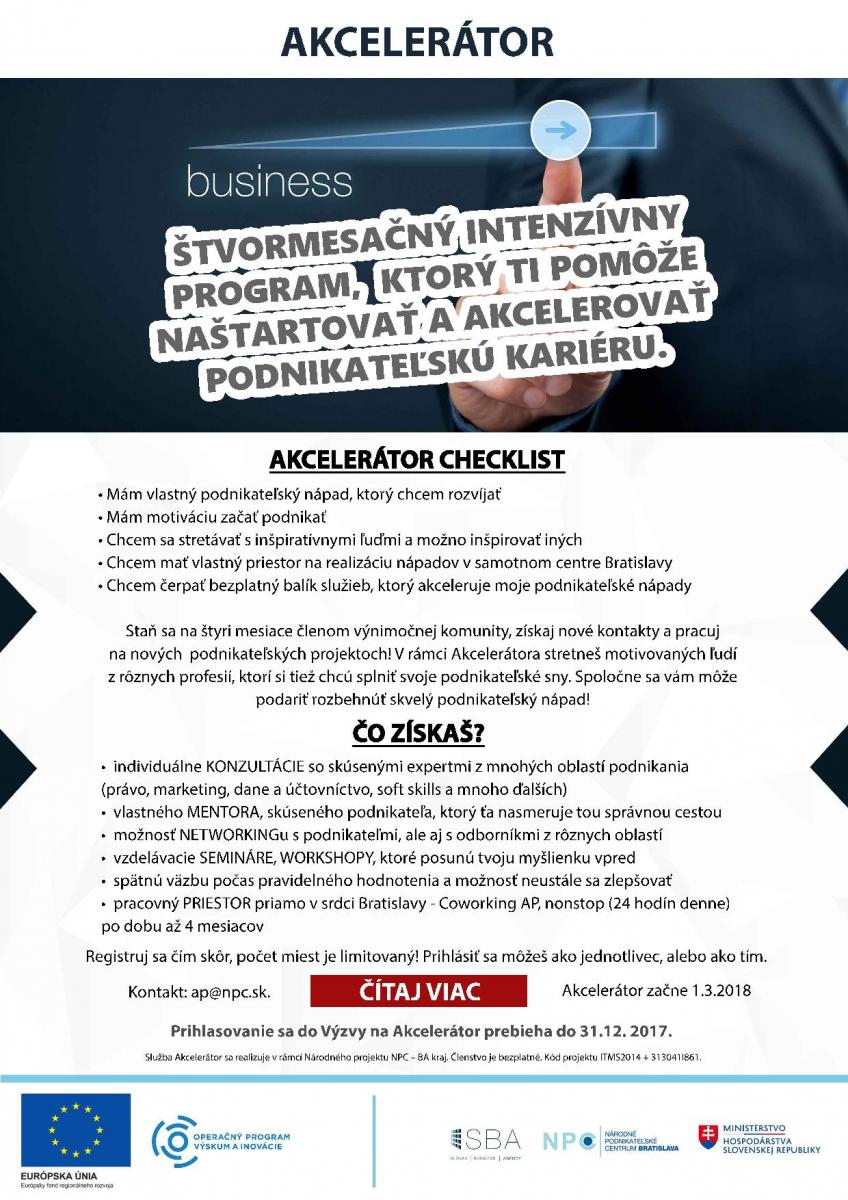Na prihlásenie sa do Akcelerátora je potrebné