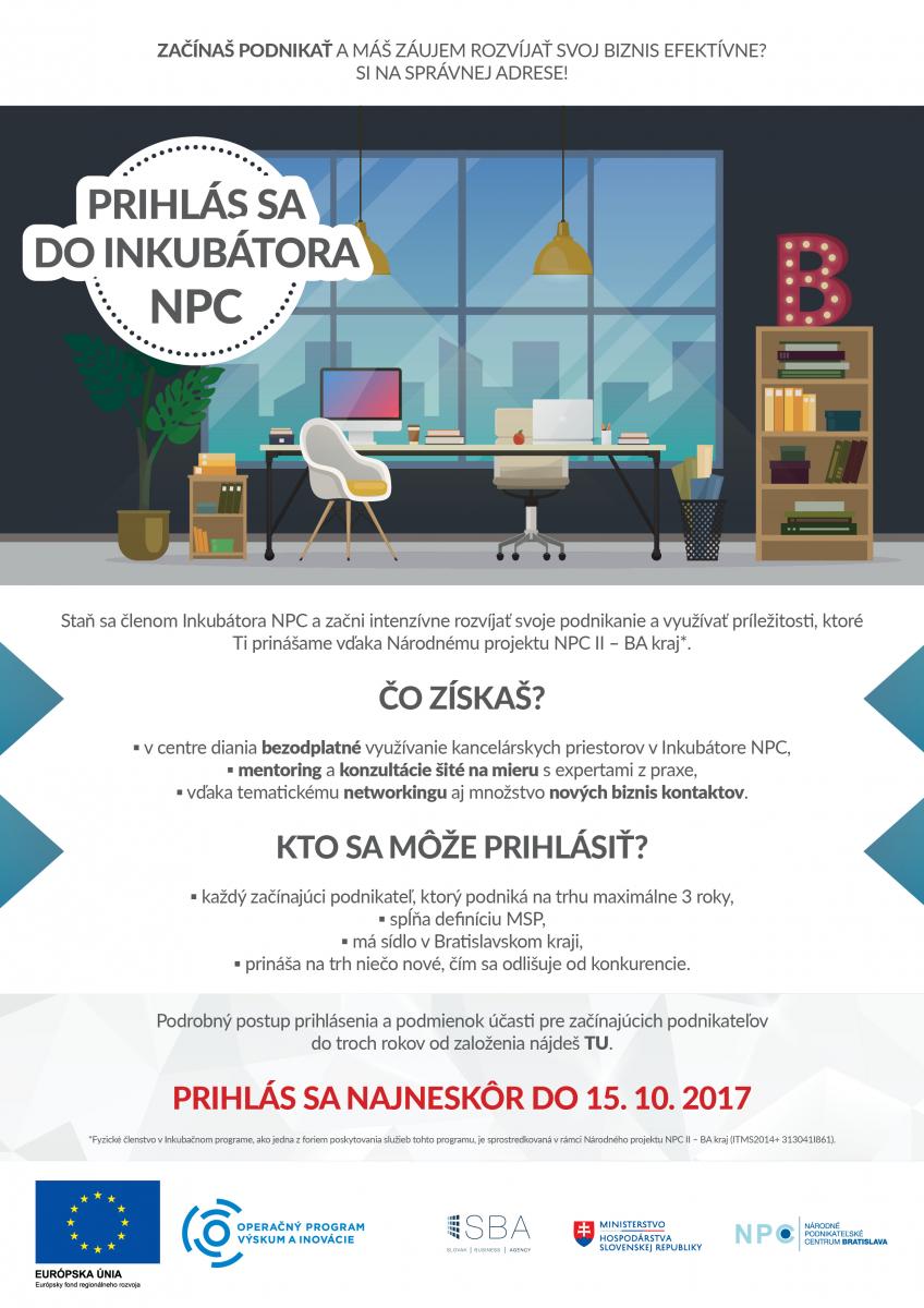 Výzva na prihlasovanie predĺžená do 31.10.2017! Využite jedinečnú príležitosť získať kancelárske priestory a poradenstvo v inkubátore NPC.