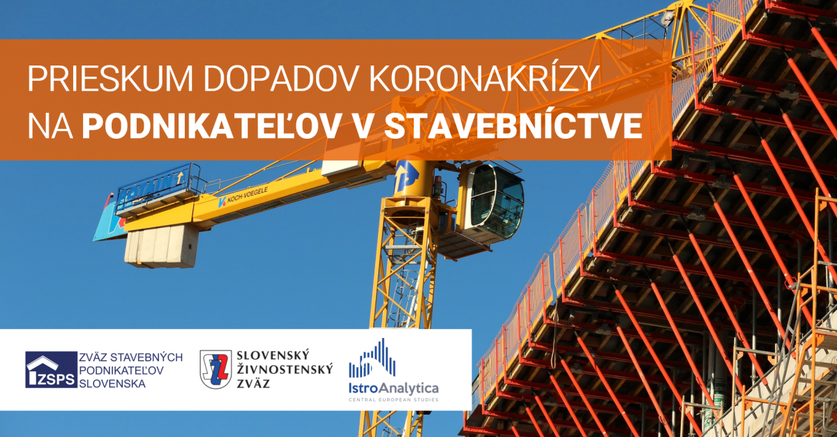 Podnikáte ako firma či živnostník v stavebníctve a aj vaše podnikanie zasiahla koronakríza? Pridajte sa k účastníkom prieskumu, ktorý v súčasnosti realizujú Zväz stavebných podnikateľov Slovenska (ZSPS) a Slovenský živnostenský zväz (SŽZ) v spolupráci s Inštitútom stredoeurópskych štúdií IstroAnalytica medzi členmi obidvoch zväzov a ďalšími podnikateľmi v stavebníctve.