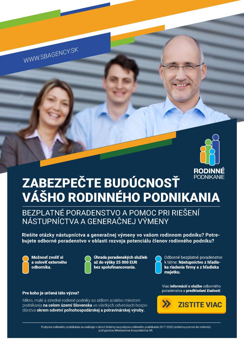 Podpora rodinného podnikania sa realizuje v rámci Schémy na podporu rodinného podnikania 2017 – 2020 (schéma pomoci de minimis) pod gesciou Ministerstva hospodárstva SR.