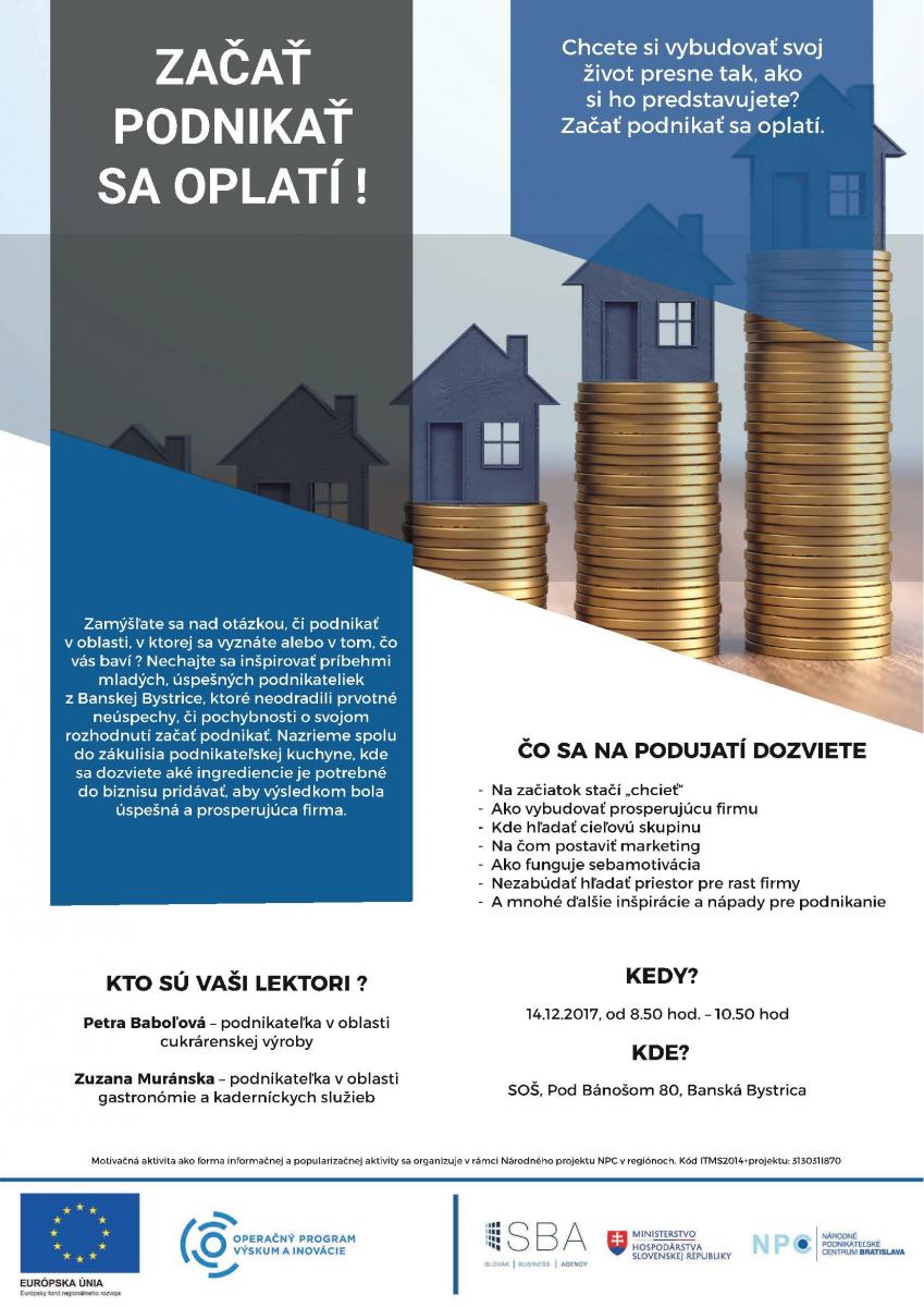 Zamýšľate sa nad otázkou, či podnikať v oblasti, v ktorej sa vyznáte alebo v tom, čo vás baví ? Nechajte sa inšpirovať príbehmi mladých, úspešných podnikateliek z Banskej Bystrice, ktoré neodradili prvotné neúspechy, či pochybnosti o svojom rozhodnutí začať podnikať. Nazrieme spolu do zákulisia podnikateľskej kuchyne, kde sa dozviete aké ingrediencie je potrebné do biznisu pridávať, aby výsledkom bola úspešná a prosperujúca firma.