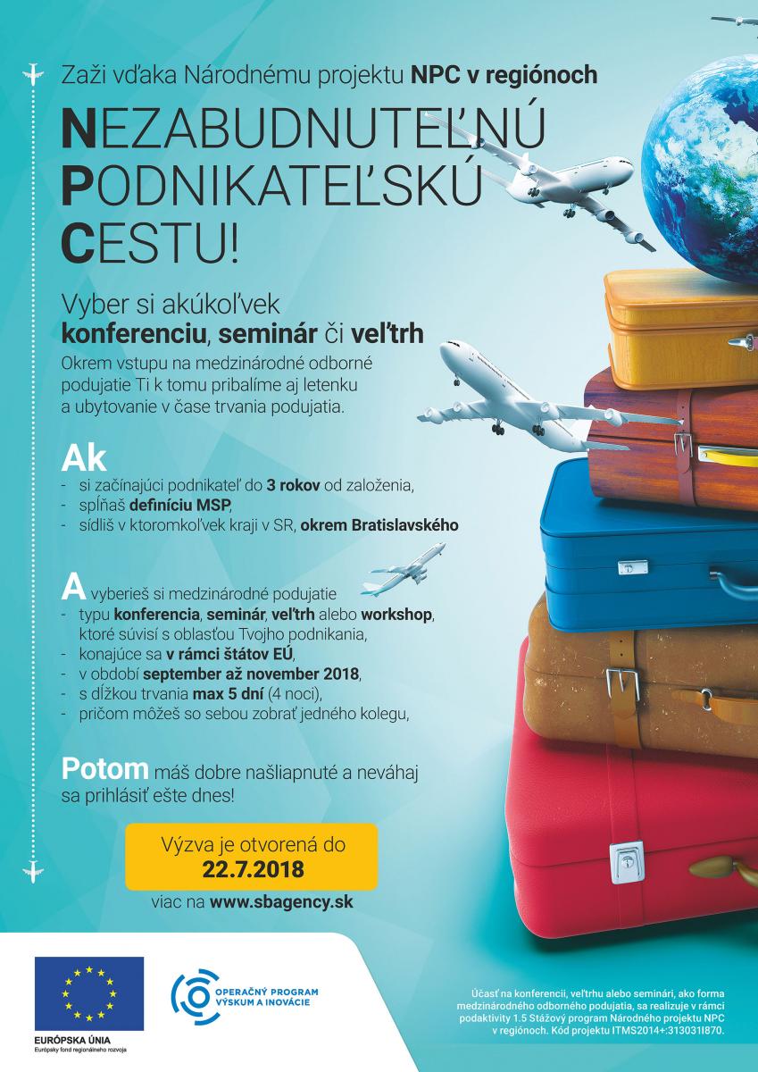Účasť na medzinárodných odborných podujatiach je pre podnikateľov zabezpečená prostredníctvom Národného projektu NPC v regiónoch, v rámci Stážového programu. Viac informácií o Stážovom programe sa dočítate v Implementačnom manuáli.