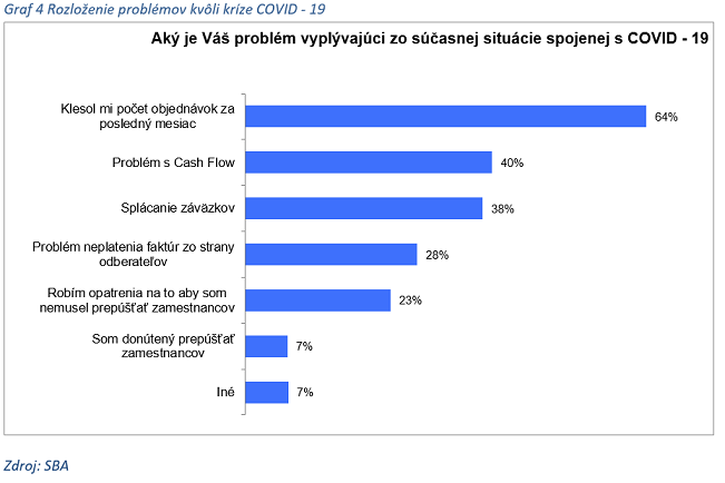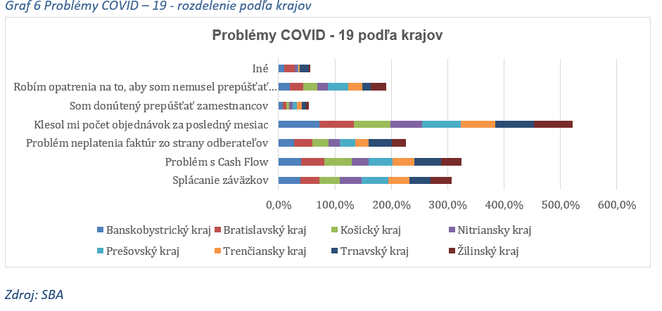 Odpovede zo všetkých regiónov Slovenska sú zosumarizované v nasledujúcich grafoch. Prevažnej väčšine podnikov klesol za posledný mesiac počet objednávok. Problém s Cash Flow, prinútil menšie firmy, hlavne tie s kamennými prevádzkami už teraz prepustiť ľudí a zavrieť prevádzku. Z grafu vidíme, že niektorí podnikatelia sa snažia robiť opatrenia a neprepúšťať zamestnancov celoplošne. Situáciu riešia napríklad aj znižovaním úväzkov.